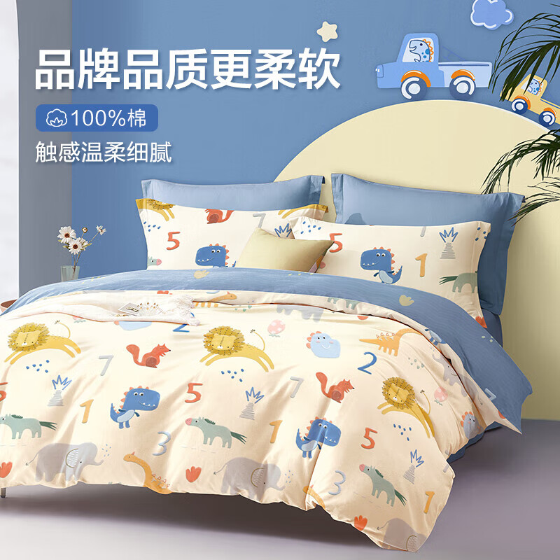 博洋(BEYOND)博洋家纺全棉四件套纯棉被套床单套件 博士恐龙150cm