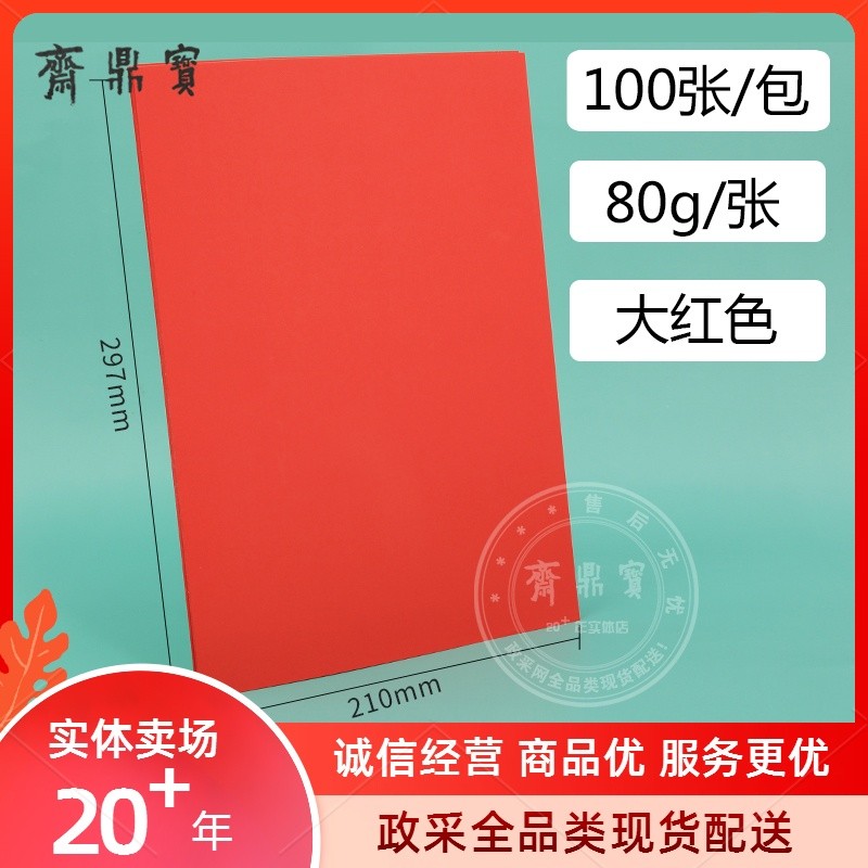 A4彩色不干胶打印纸 彩纸 100张/包 80g 大红色SKU:tjmckj984653